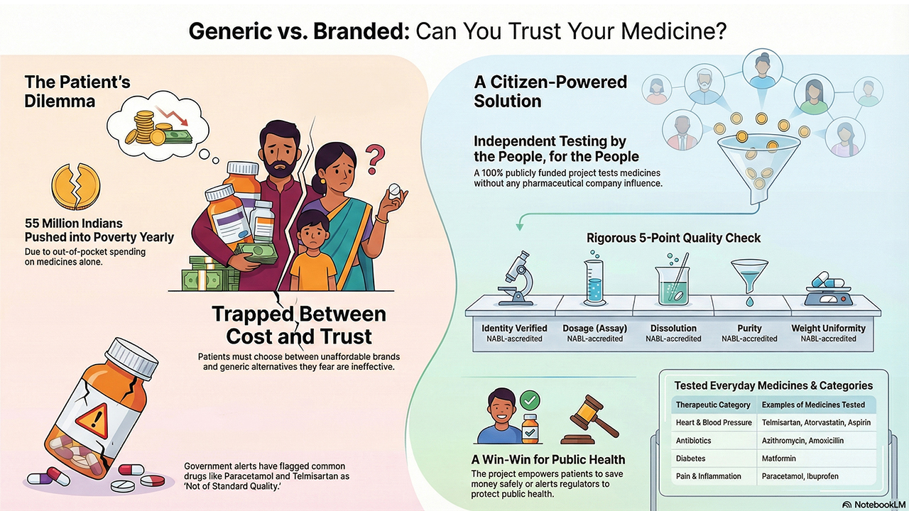 Government schemes like Jan Aushadhi offer medicines at 50–90% lower prices. But without independent verification, how can patients—or their doctors—trust them?